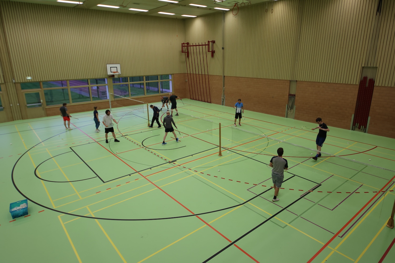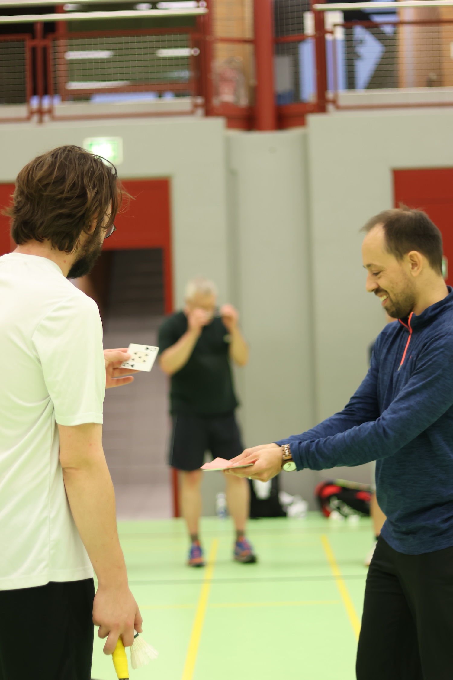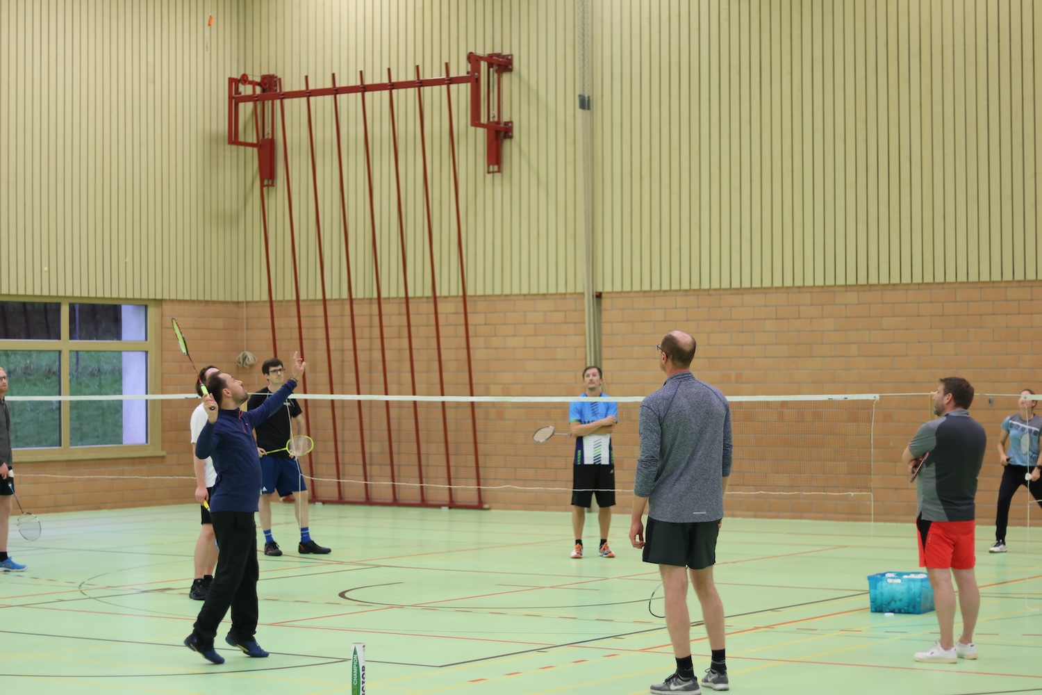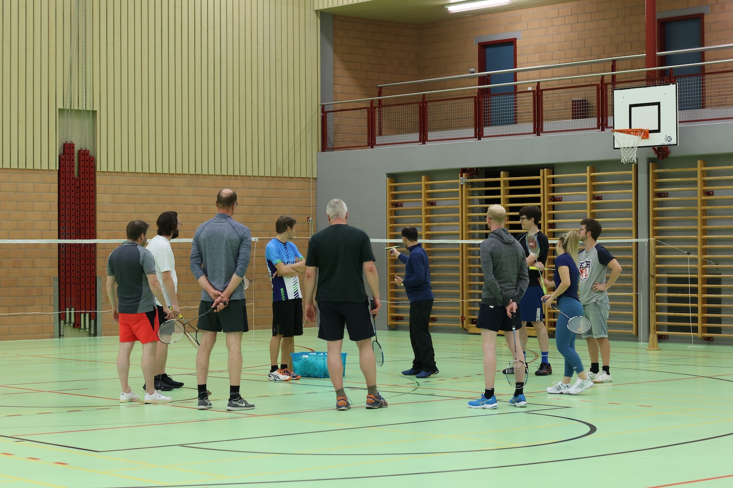 Auf unsere Einladung, zu einem gemeinsamen sportlichen Abend, meldeten sich schnell 12 Mitarbeiter der Bachem an. Voller Motivation begann das Training zunächst mit einem kleinen Warm-up und einer kurzen Einführung zu den Regeln und dem Spielfeld im Badminton. Schon kurze Zeit später durften alle Teilnehmer die ersten Shuttle schlagen. Unter Anleitung von Trainer Urs und spielender Unterstützung Salome, wurden die verschiedenen Schlagarten wie Drive, Clear & co ausprobiert. Auch wenn es nicht immer gleich beim ersten Mal klappte, hatten alle sichtlich Spass und zeigten sehr viel Ehrgeiz. Ein kurzes Geschicklichkeitsspiel mit einem kleinen Zielschiessen lockerte die Trainingszeit zusätzlich noch etwas auf.