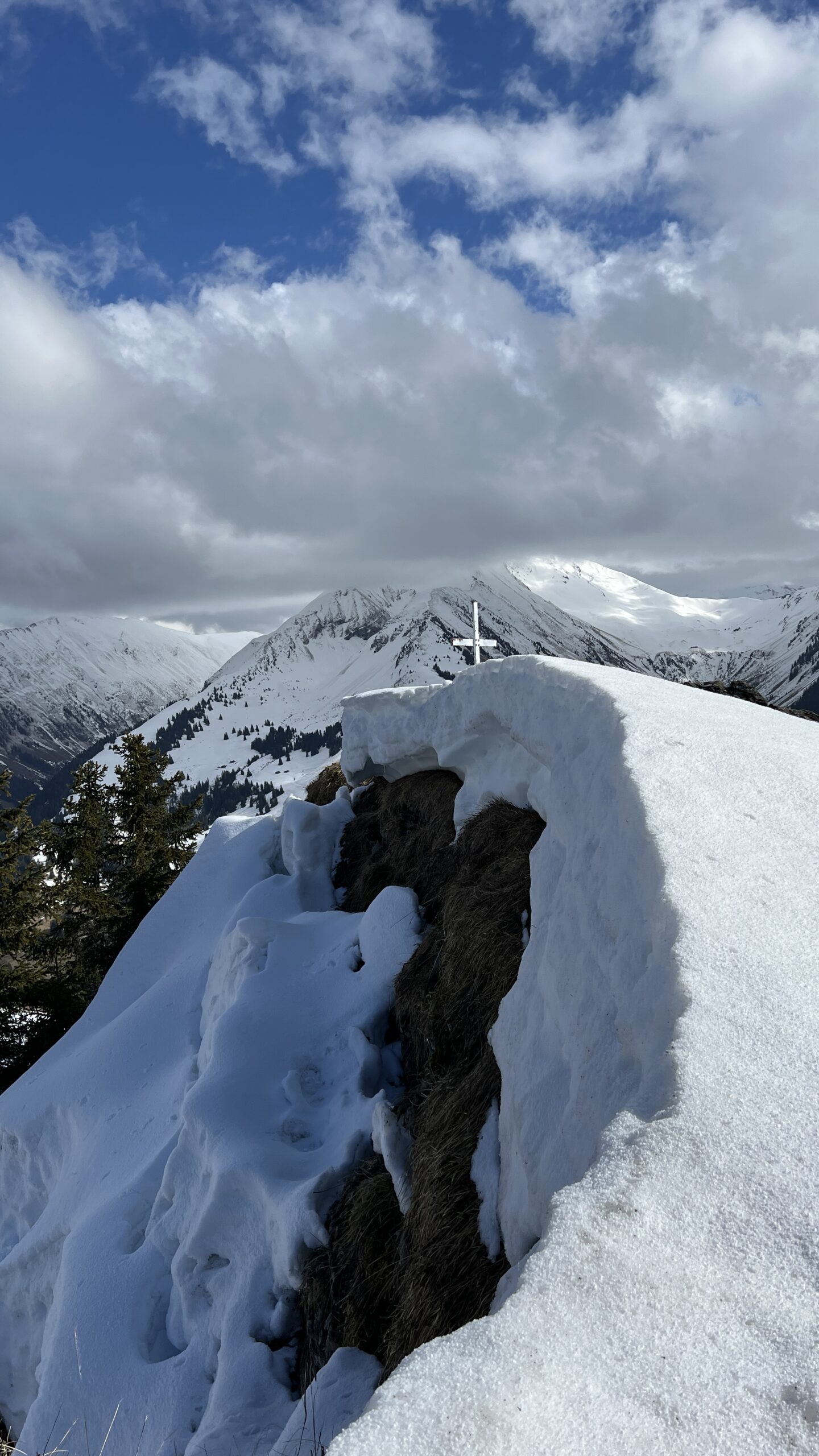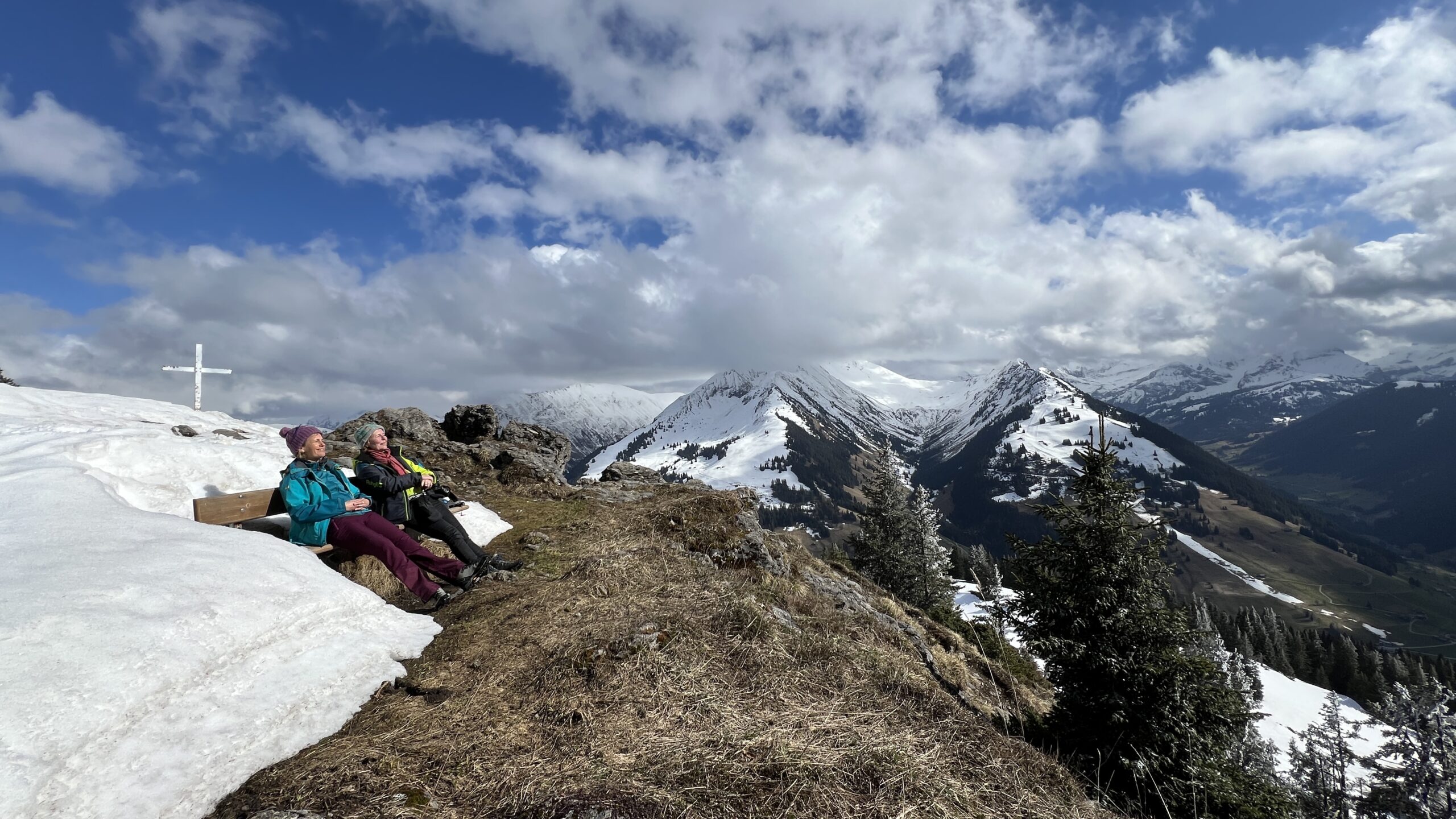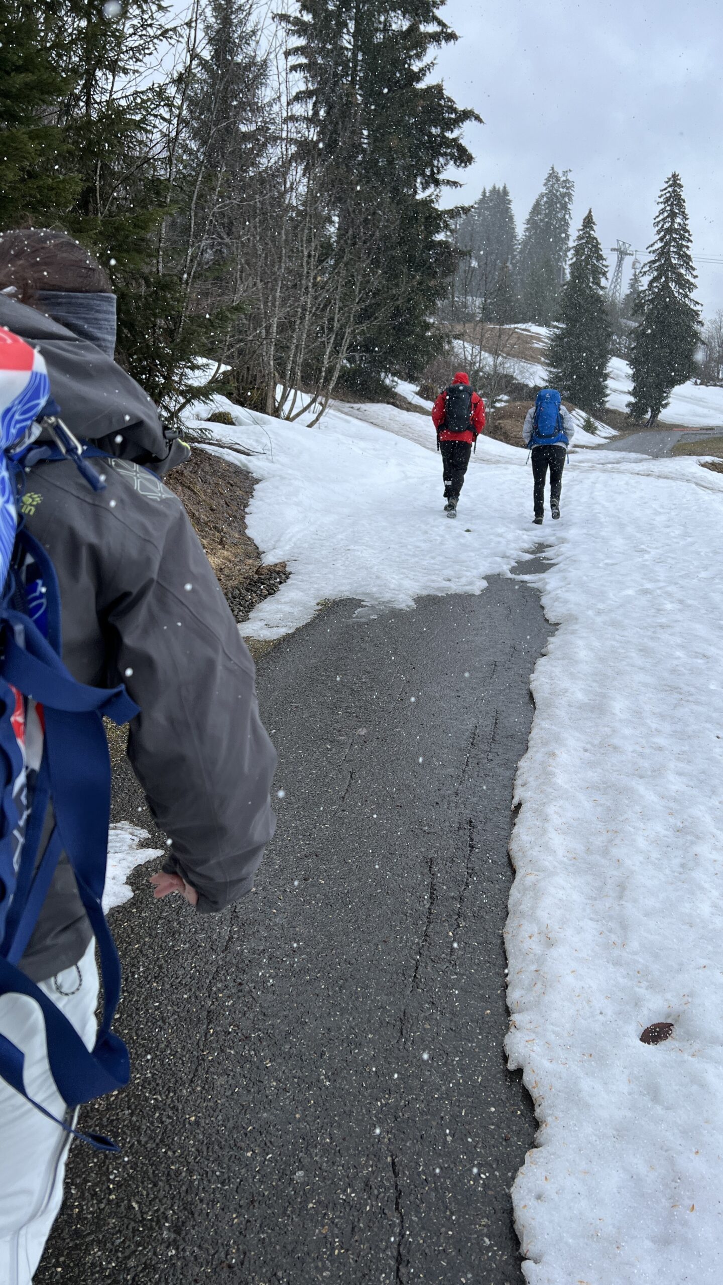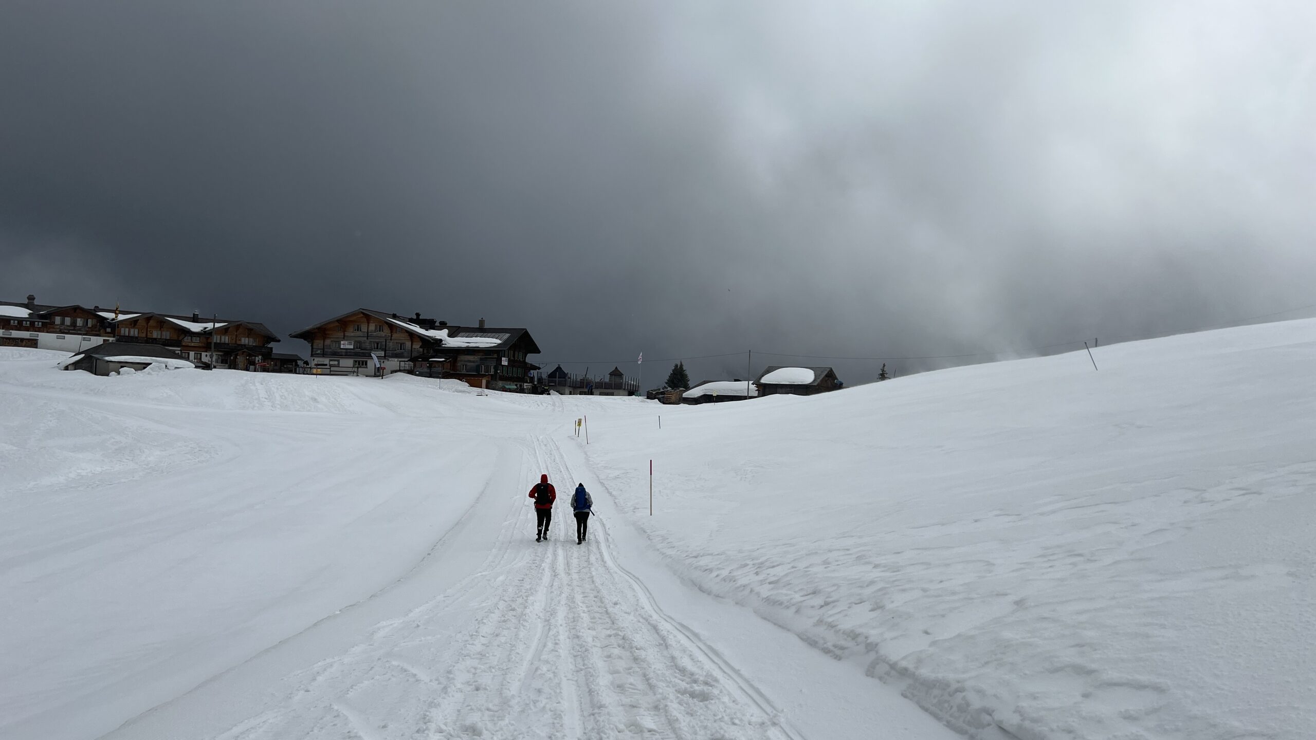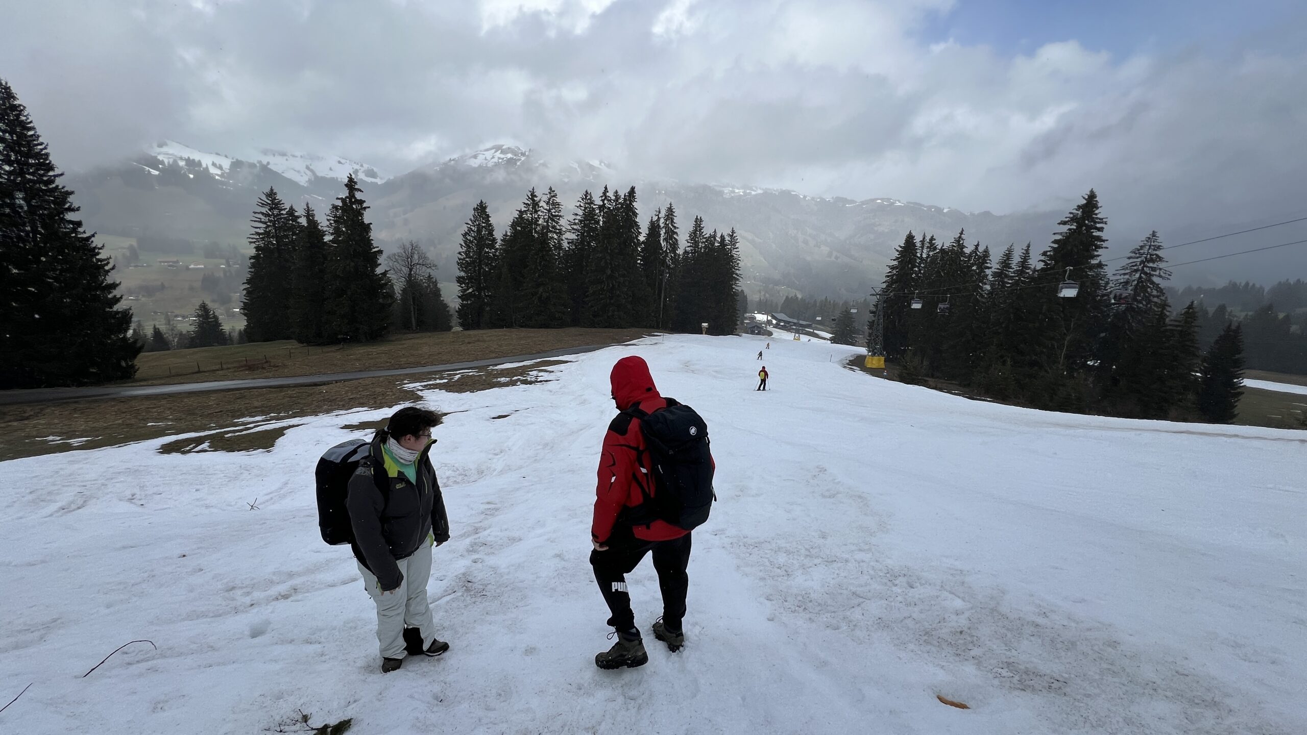 Mit etwas Humor, machten wir das beste draus. Während Salome und Pierre schon fleissig mit den Ski unterwegs waren, versuchten sich die anderen am Wanderweg in Richtung Hornfluh. Nach knapp 30 min Aufstieg mussten wir aber feststellen, das die Winterwanderwege nicht passierbar sind.