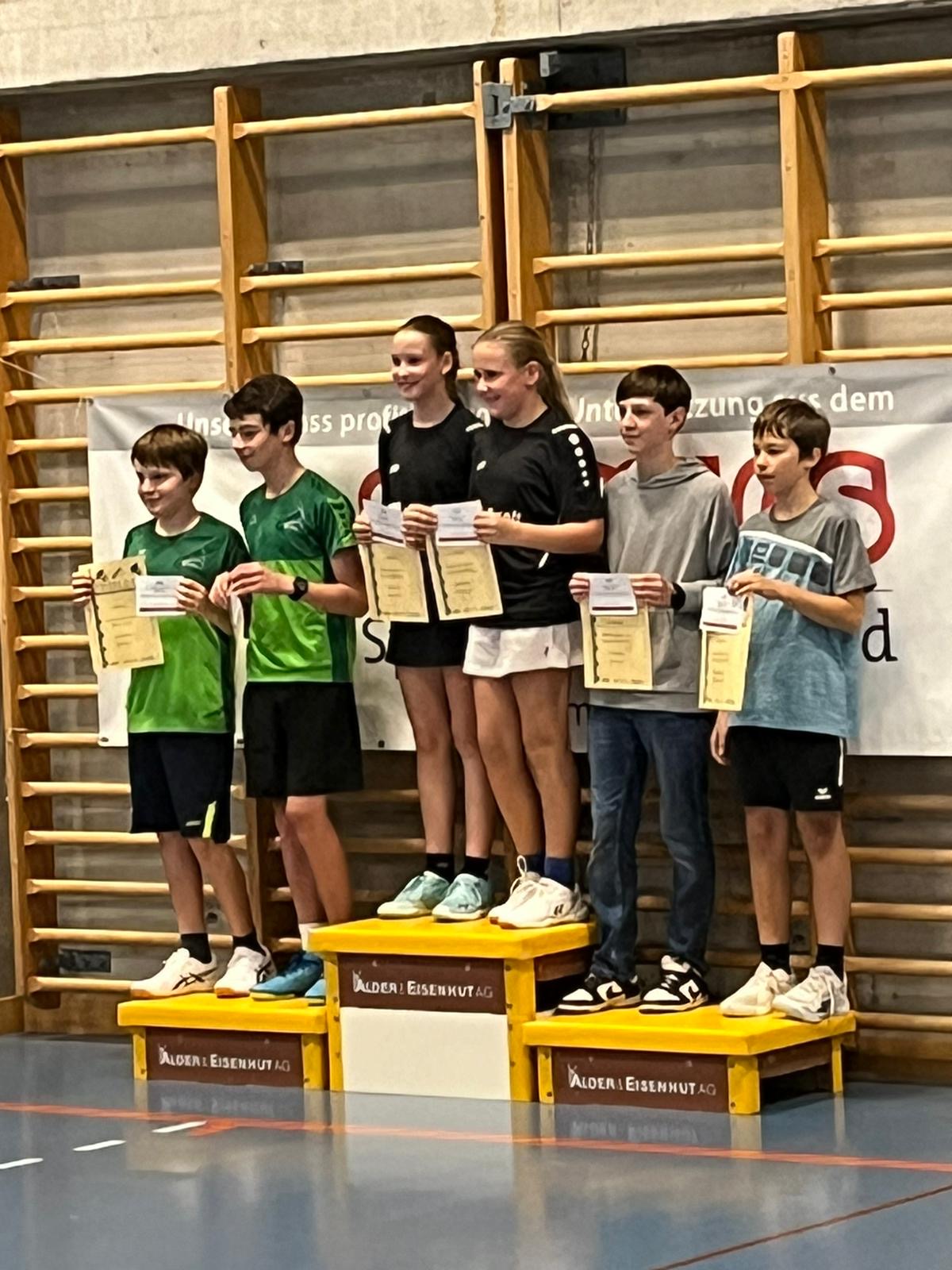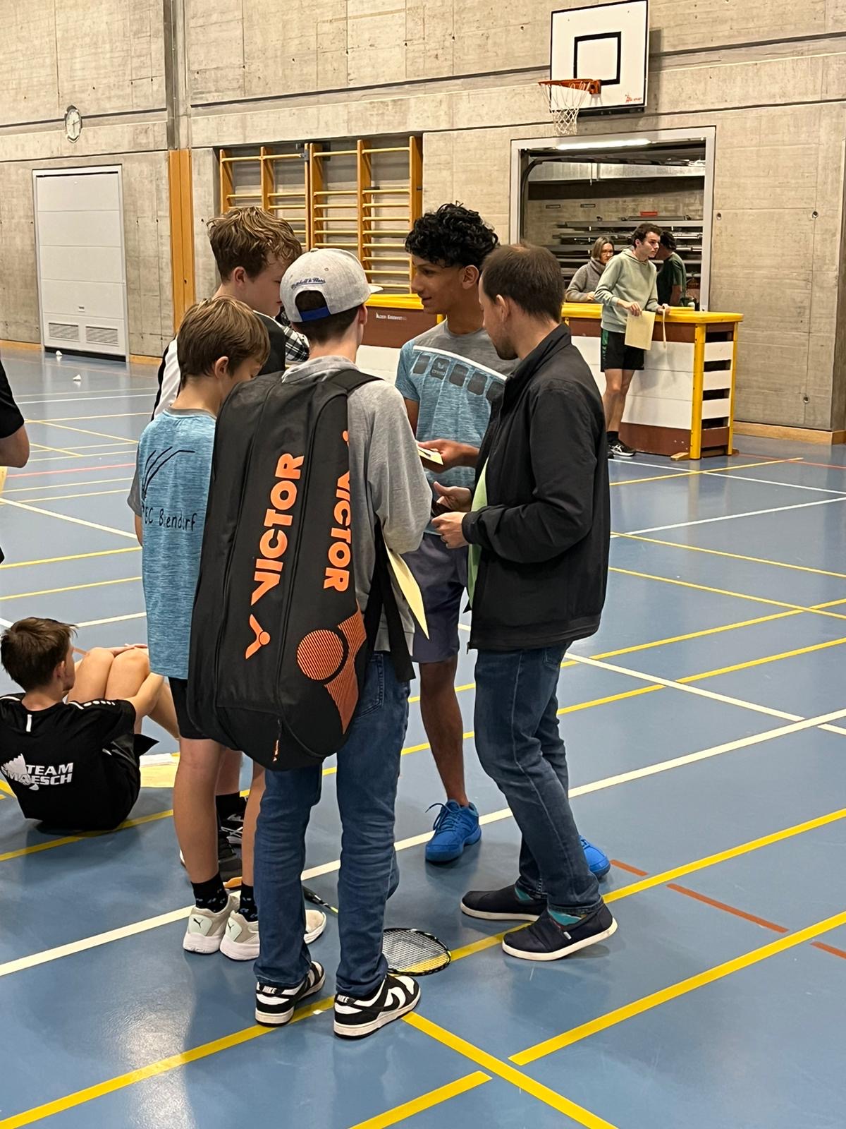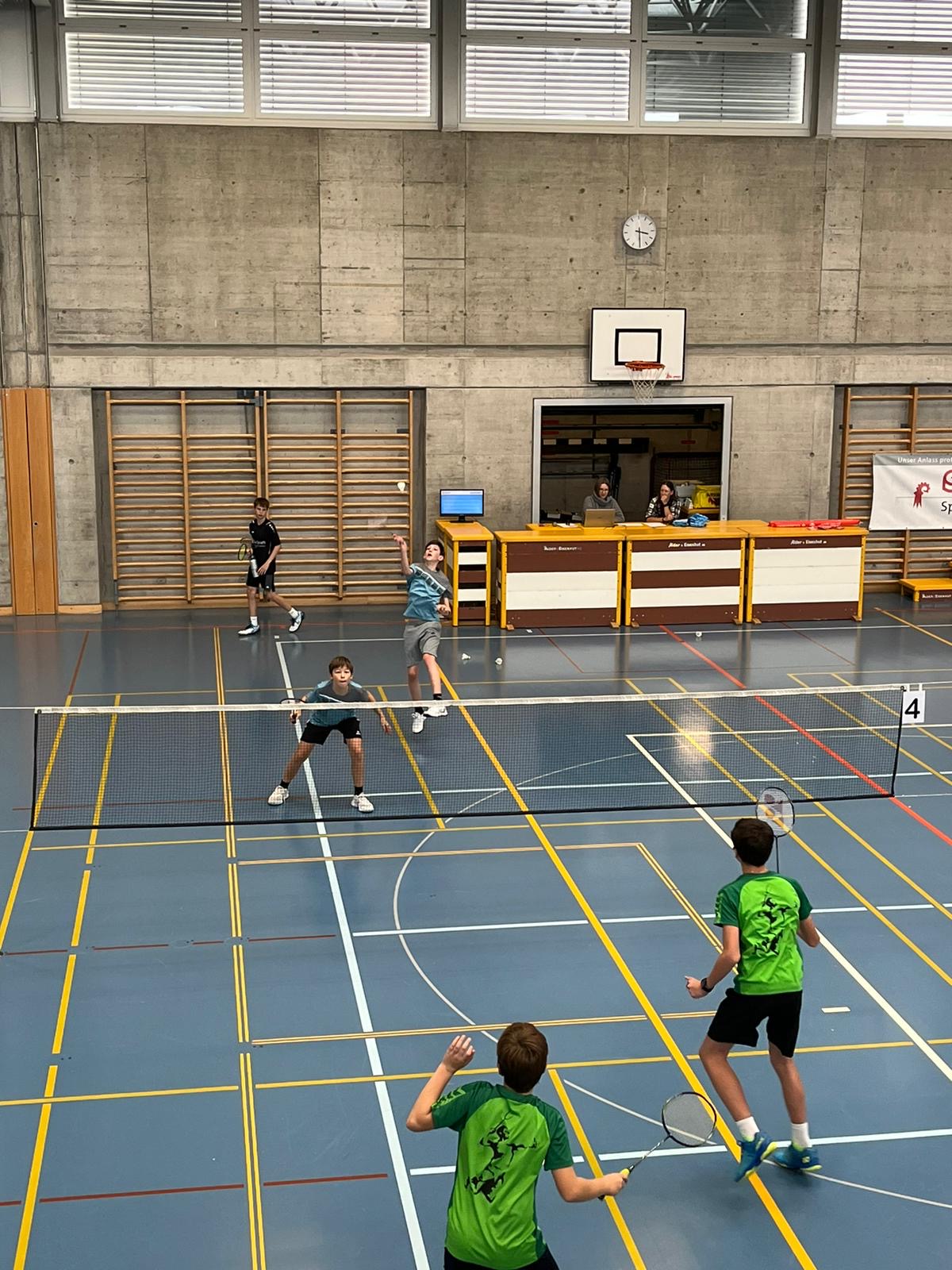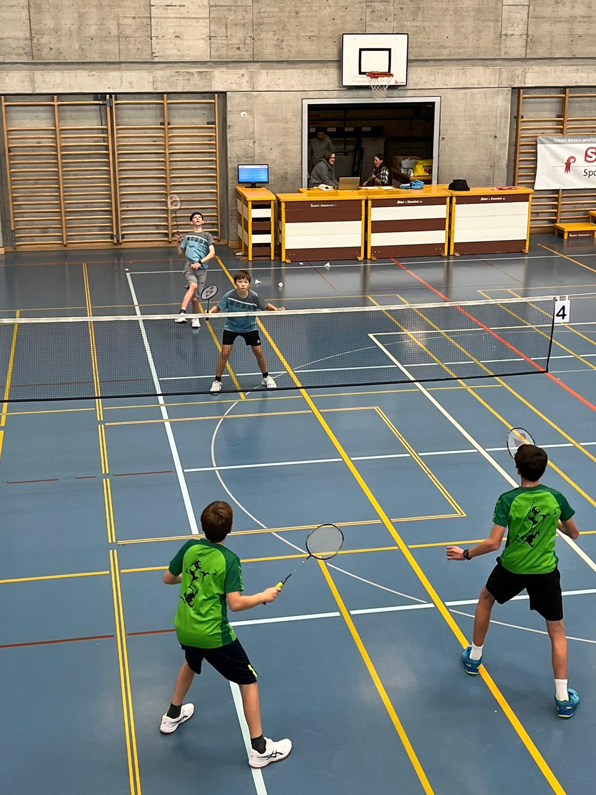 Am Samstag startete, wie gewohnt das Doppelturnier. Tejas und Joah traten gemeinsam im Pool B und Manuel und Maurice im Pool C an. Beide Junioren-Teams kämpften um jeden Punkt und gewannen einige Sätze, sodass am Schluss beide Team im jeweiligen Pool aufs Treppchen stehen durften und jeweils Platz 3 erspielten. Super gemacht!