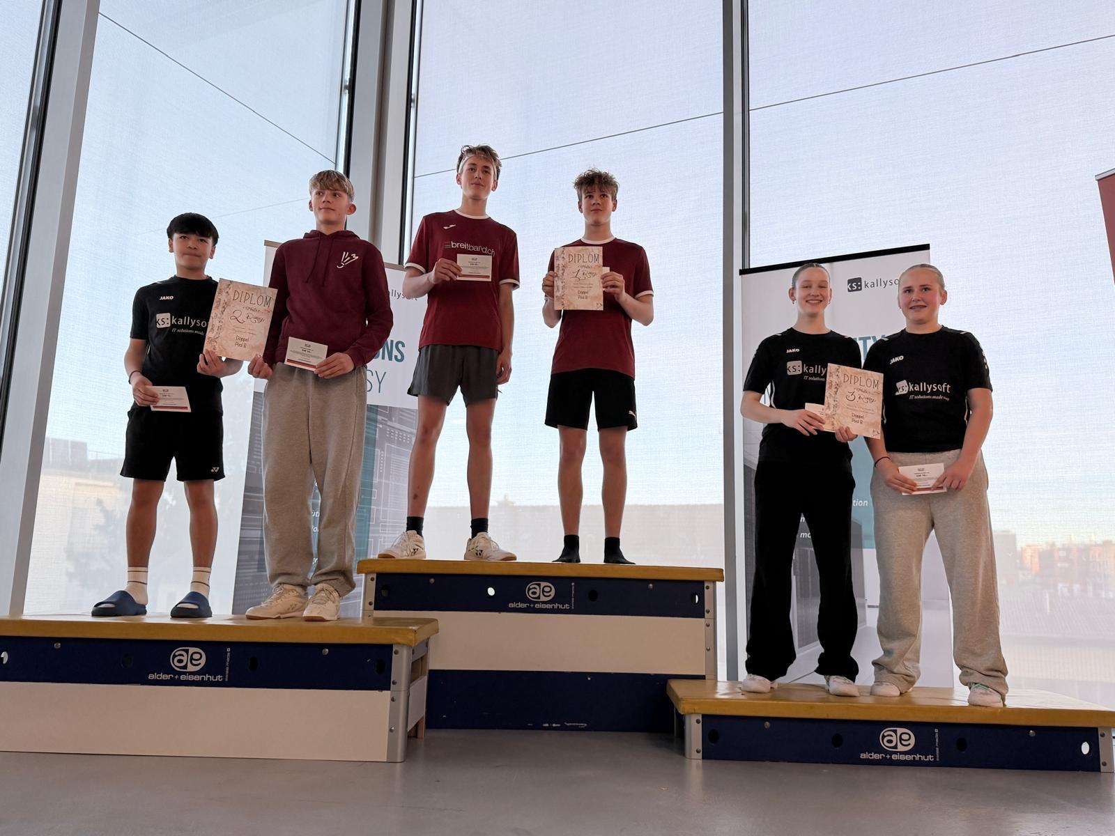Im Einzel spielte Lars im stark besetzten Pool A und erreichte mit zwei Siegen in vier schwierigen Spielen den beeindruckenden sechsten Platz. Maurice spielte erstmals im Pool B und konnte nach sehr harten, knappen Spielen gleich zwei Siege erzielen und landete auf Platz neun. Nils spielte in Pool C, gewann auch zwei Spiele — darunter mit 28:26 in einem dritten Satz — und landete auf Platz zehn. Joah spielte in Pool D, hatte wie immer extrem umkämpfte, lange Spiele, konnte schlussendlich zwei davon gewinnen und landete auf Platz sechs.