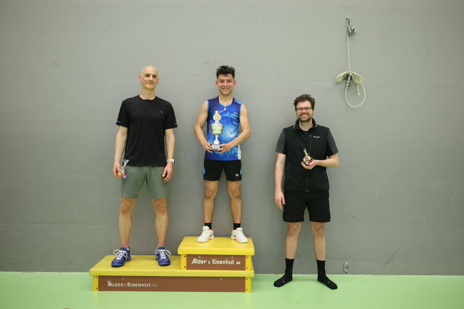 Bei den Herren spielten Marcel und Michi um Platz 3 und Etienne und Innocenzo im Finale um Platz 1 der Herren. Wieder wurden alle unterstützt durch unsere Besucher und andere Spieler, die beiden Ballwechseln sichtlich mitfieberten. Das Finale zwischen Innocenzo und Etienne zog alle Anwesenden in seinen Bann. Nach einem spannenden und herausfordernden Match, konnte Innocenzo den Titel als Clubmeister des BC Bubendorf holen und war sehr glücklich darüber.