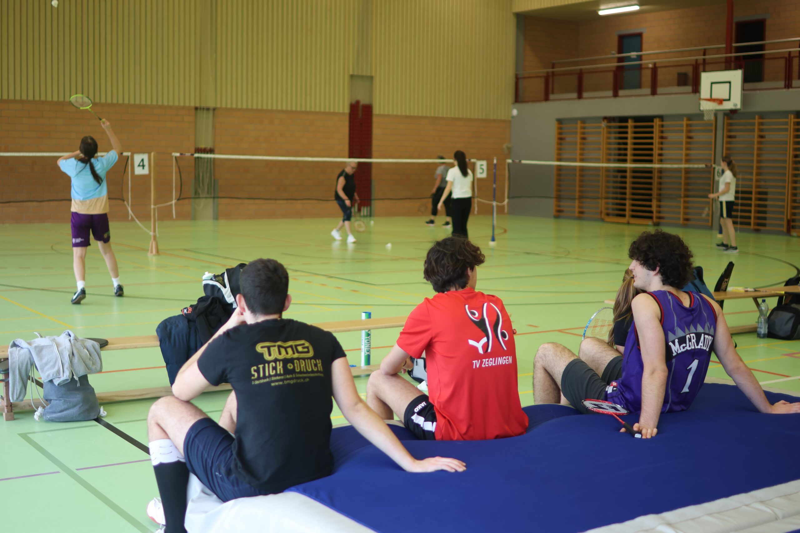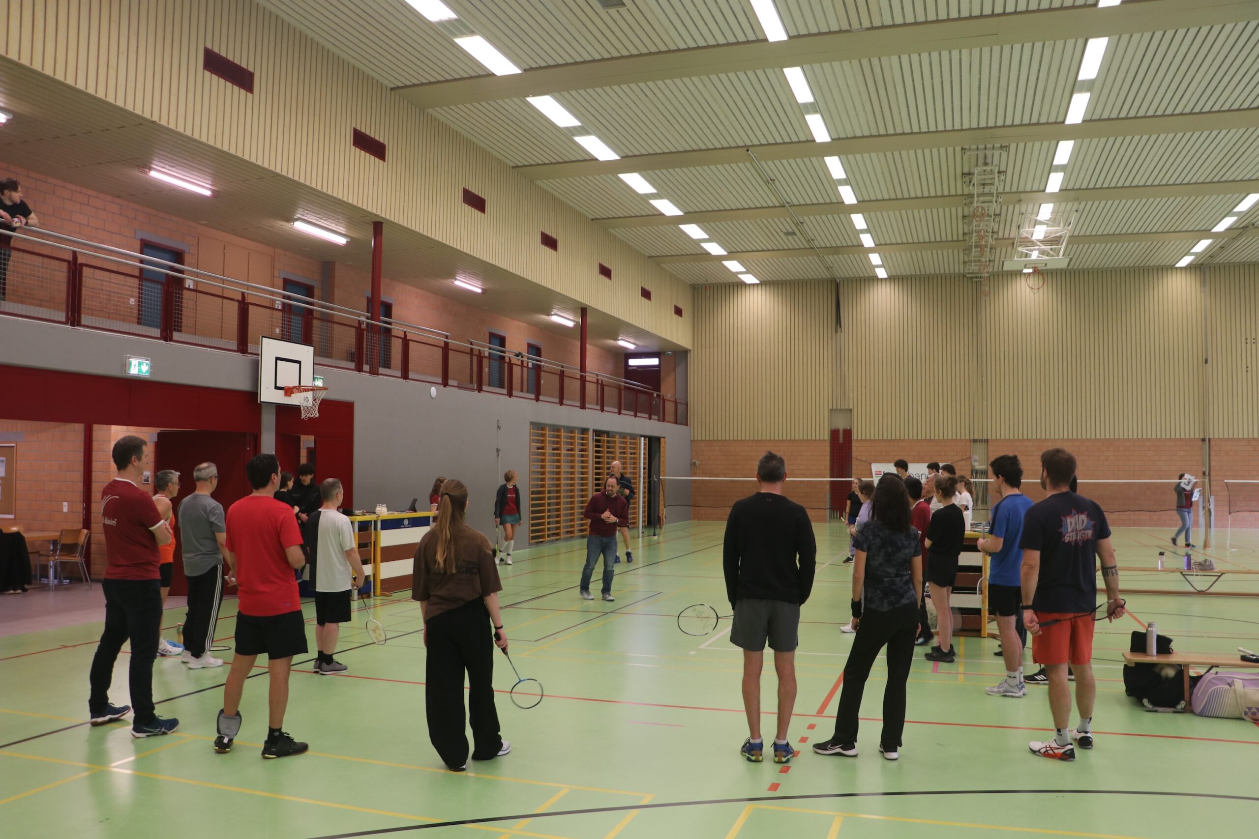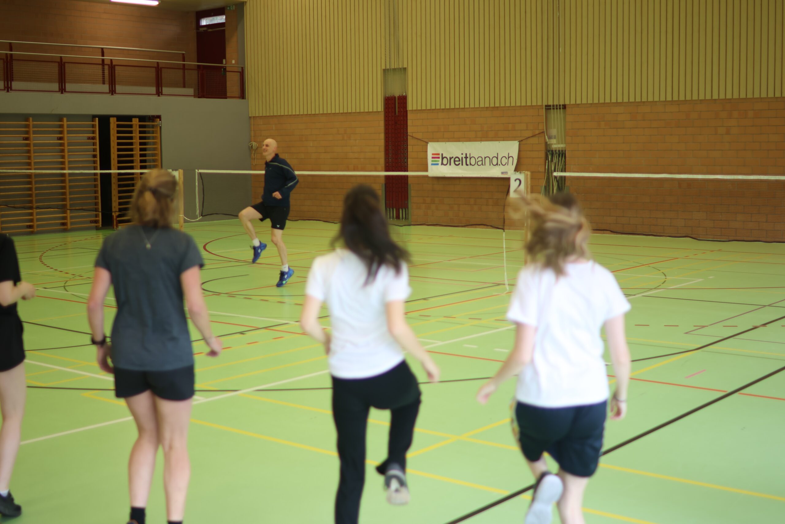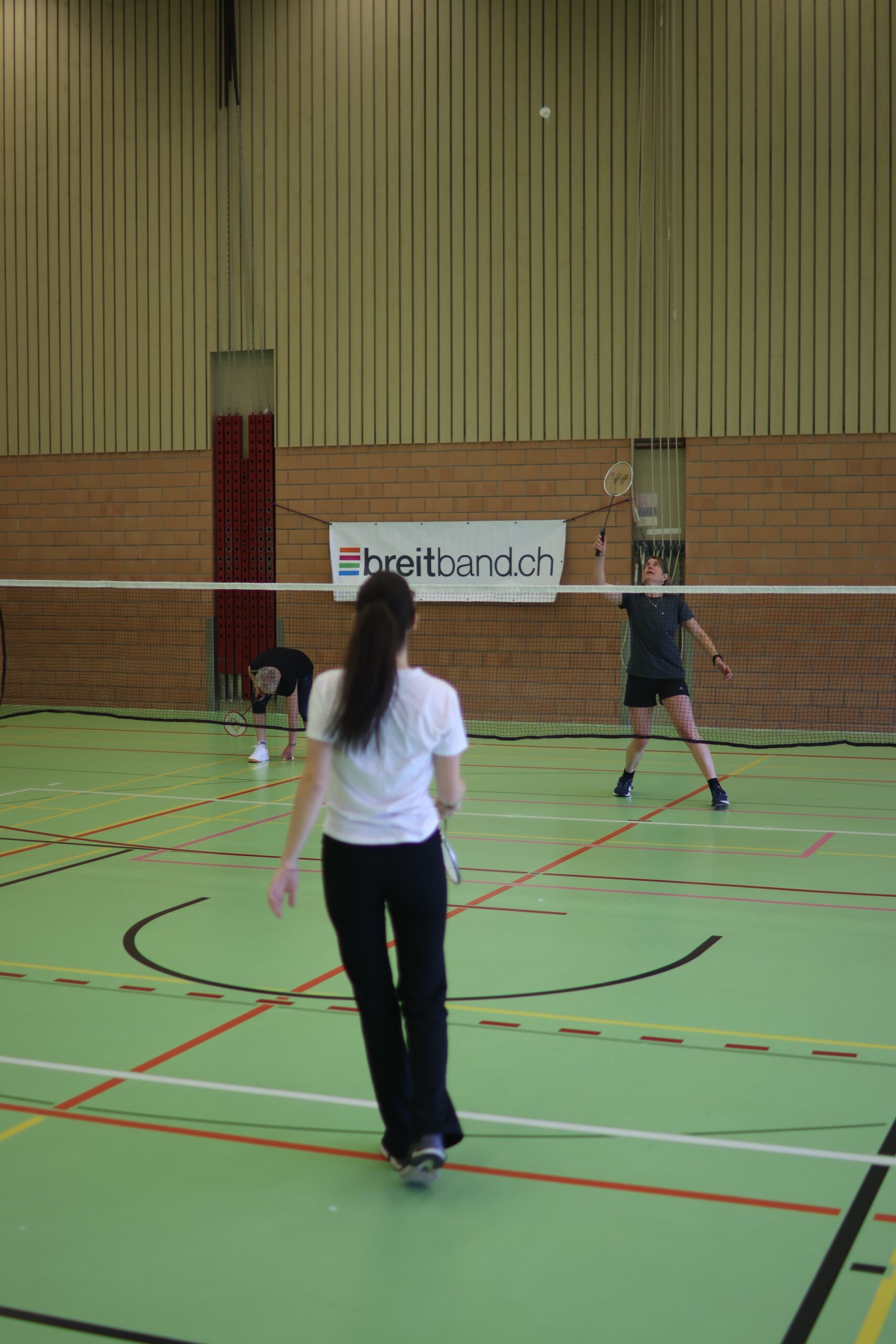 Nach der Begrüssung durch Urs, unseren Turnierleiter, und einer kurzen Einleitung in die Badmintonregeln, ging es für alle zum gemeinsamen Aufwärmen. Diesen wichtigen Part übernahm Etienne und sorgte mit viel Energie und Power gleich für warme Gelenke bei unseren Gästen. Gut vorgewärmt starteten wir dann in die erste Spielrunde. Gespielt wurde Einzel mit zwei Gewinnsätzen.