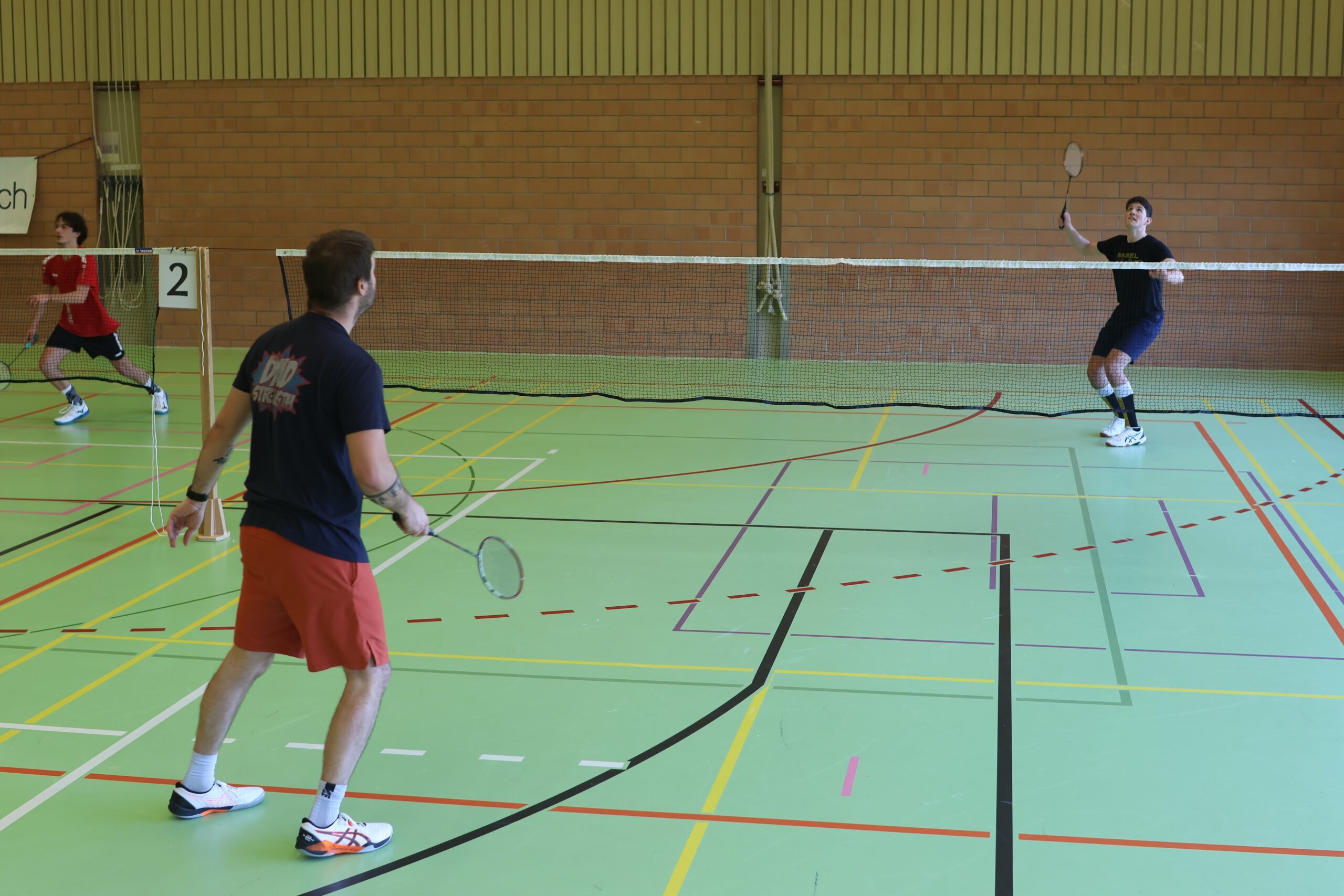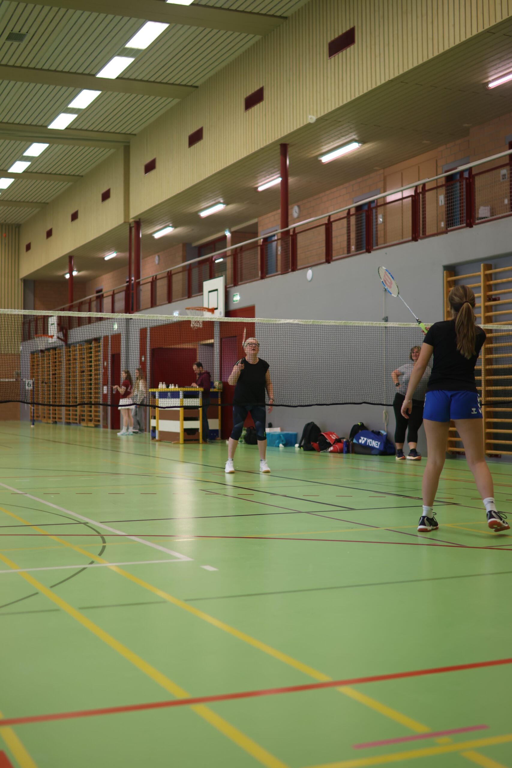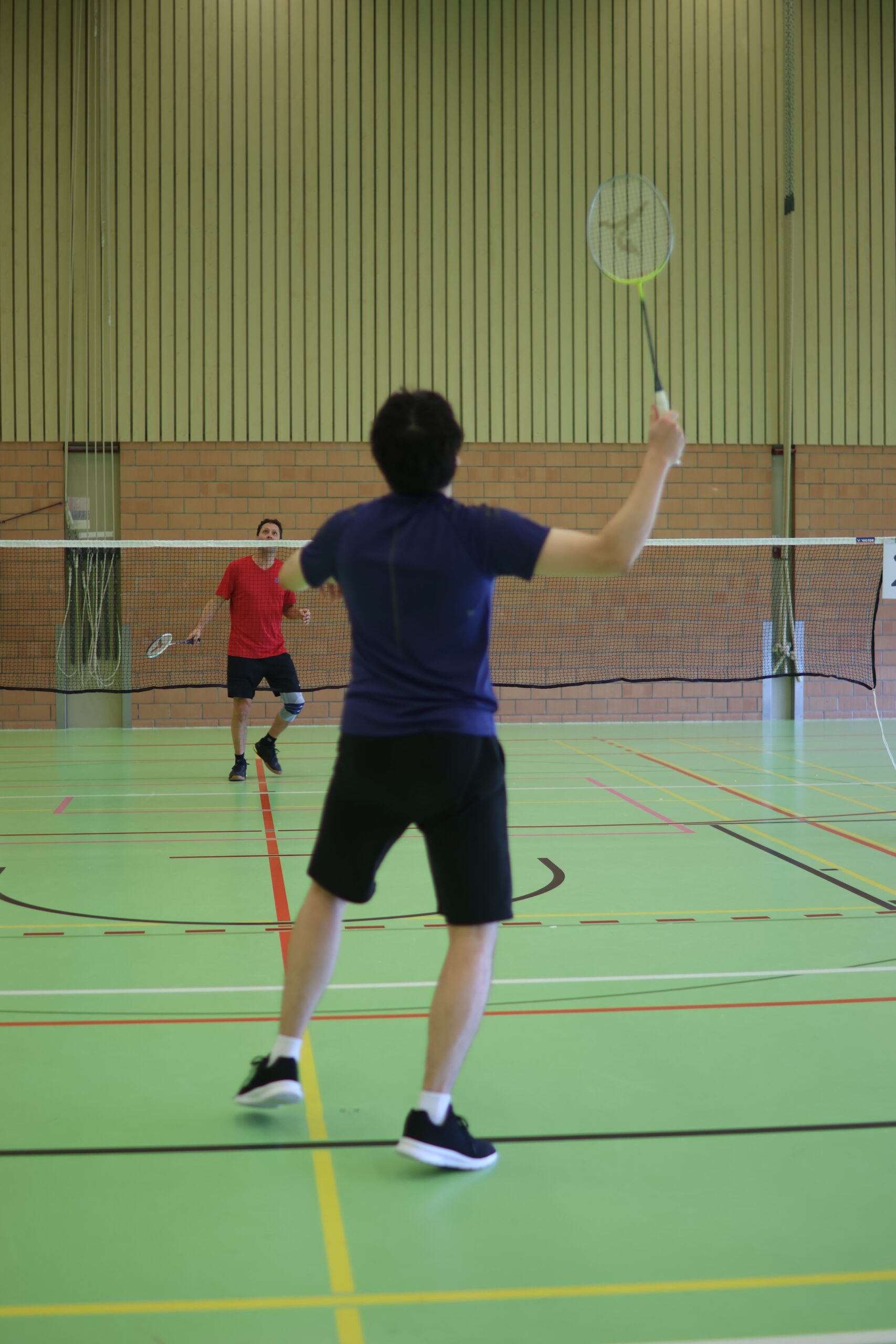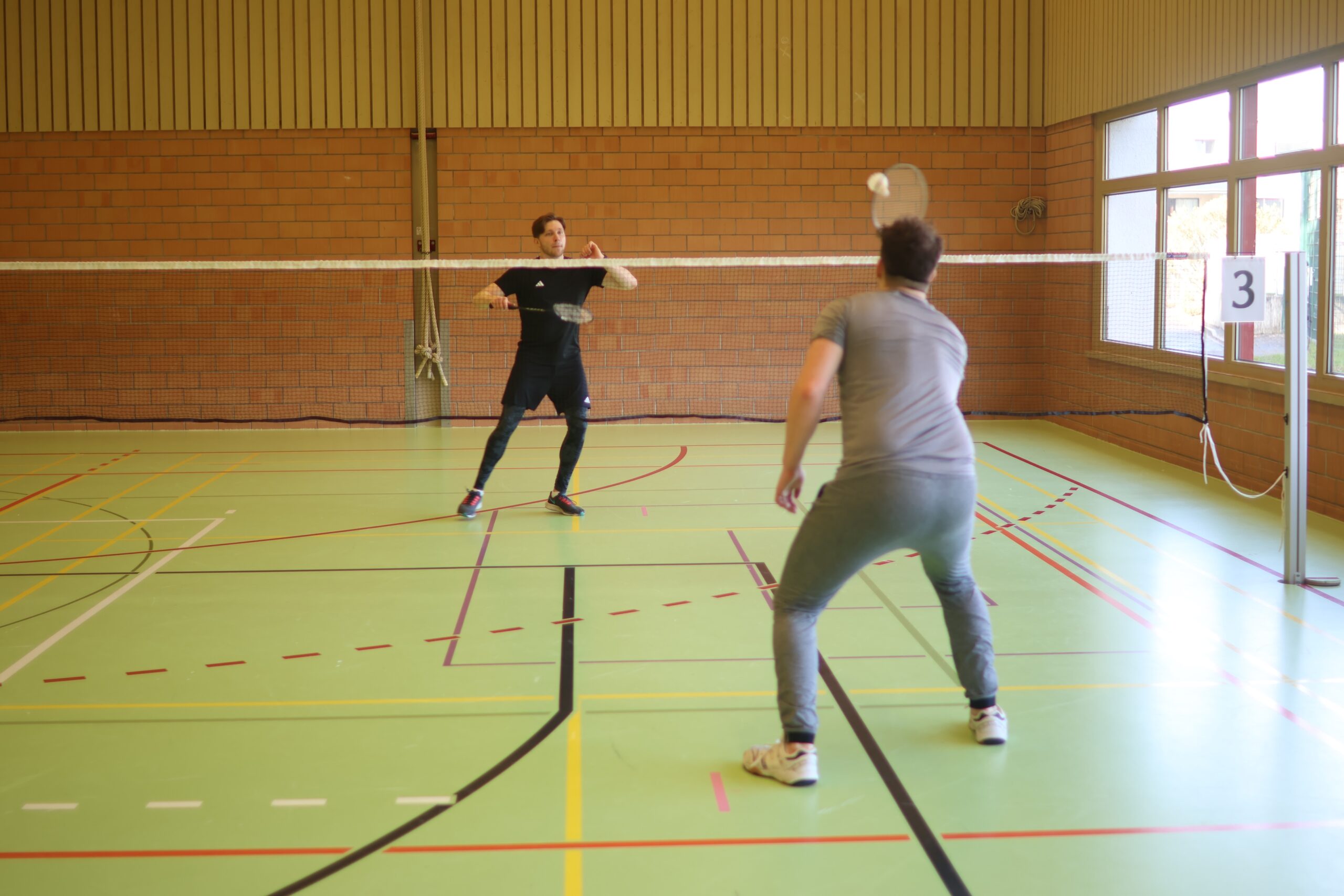 Nach der Begrüssung durch Urs, unseren Turnierleiter, und einer kurzen Einleitung in die Badmintonregeln, ging es für alle zum gemeinsamen Aufwärmen. Diesen wichtigen Part übernahm Etienne und sorgte mit viel Energie und Power gleich für warme Gelenke bei unseren Gästen. Gut vorgewärmt starteten wir dann in die erste Spielrunde. Gespielt wurde Einzel mit zwei Gewinnsätzen.