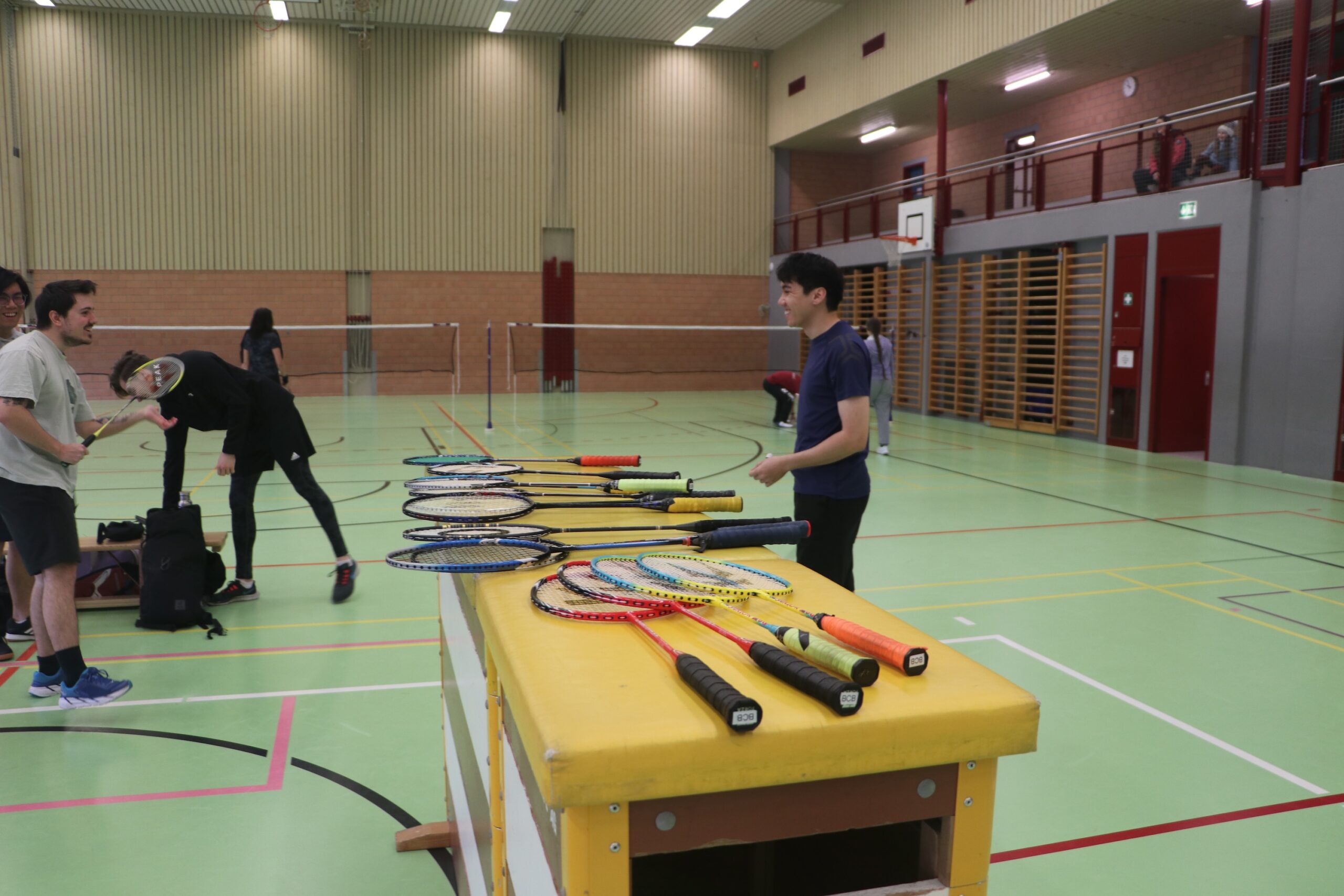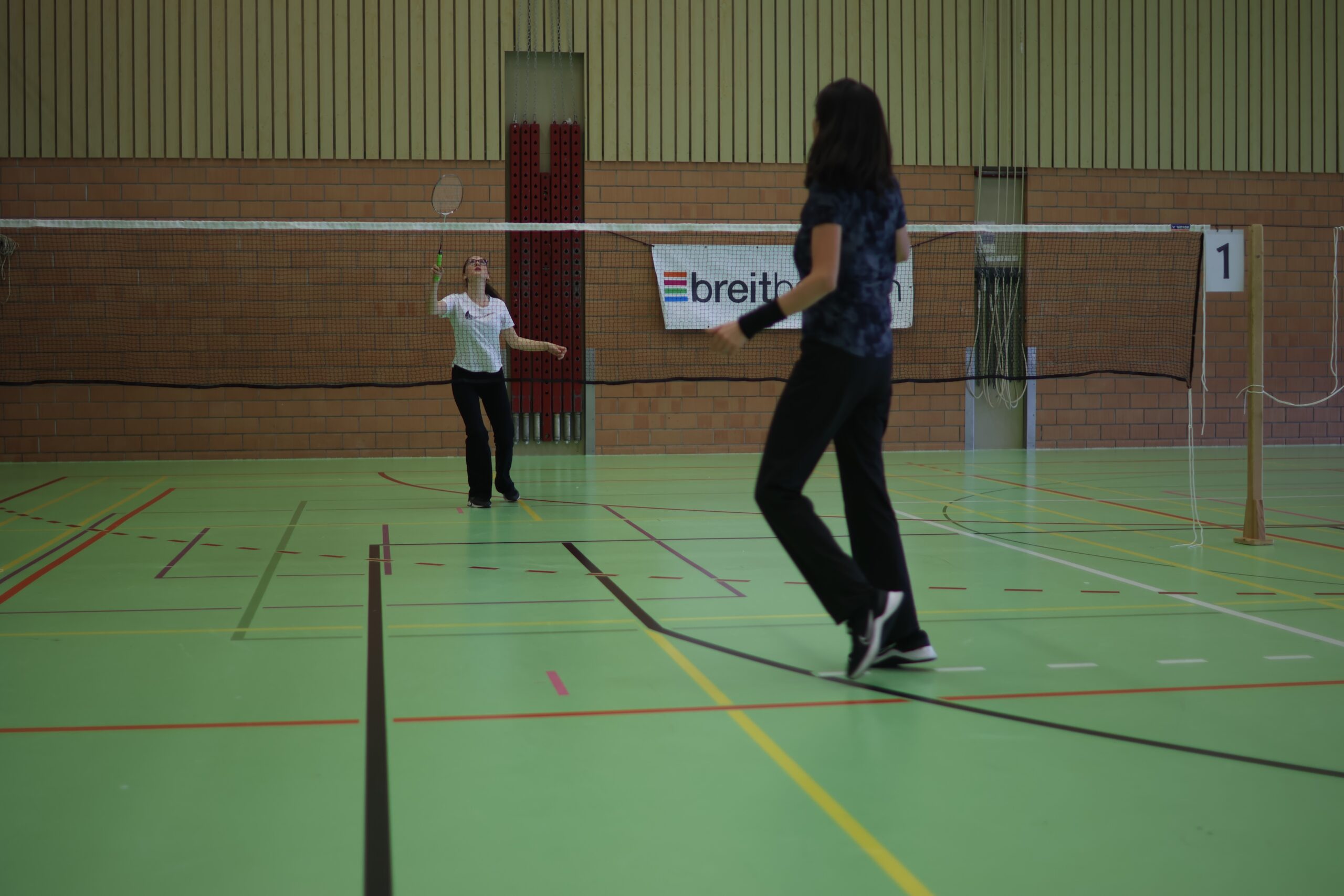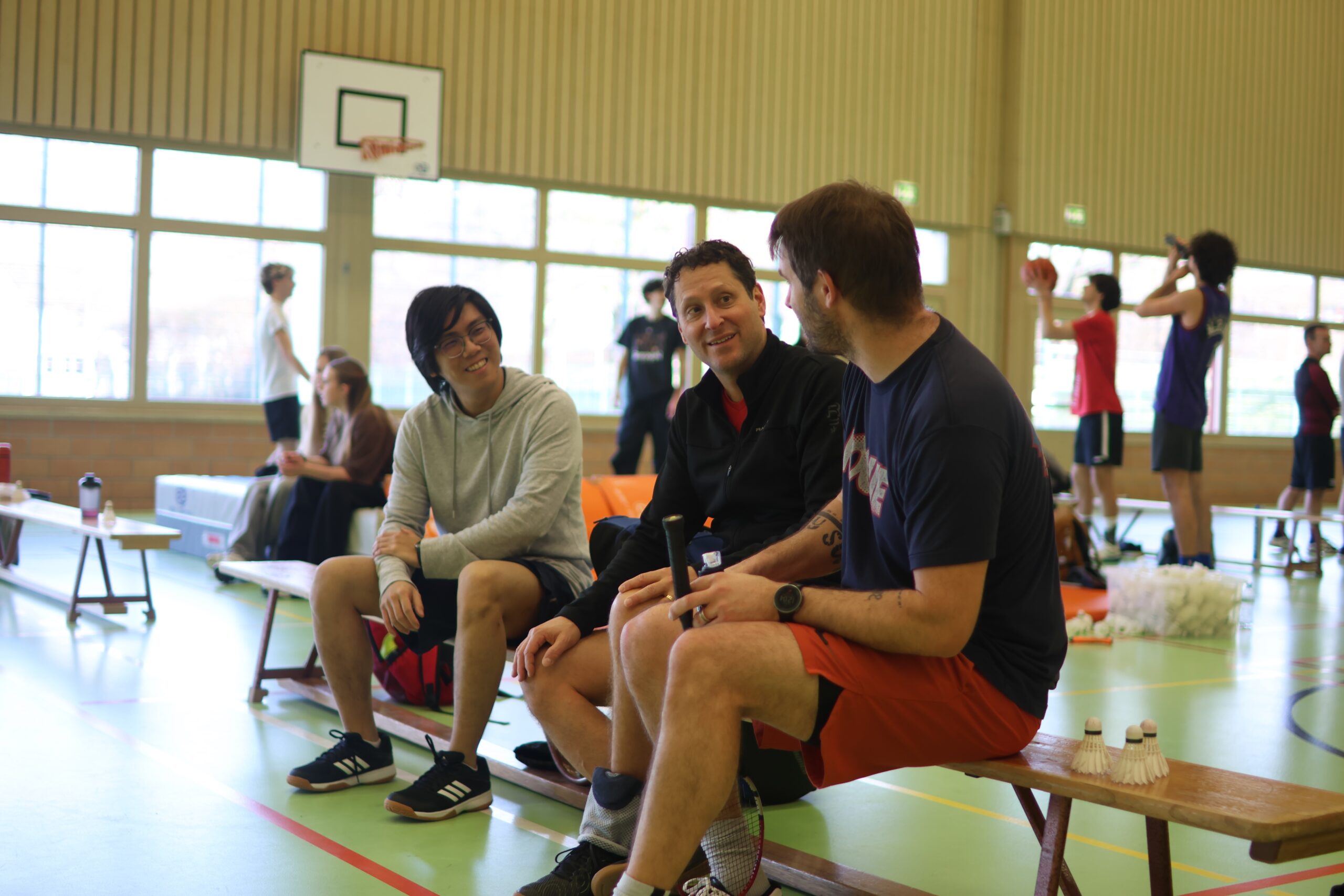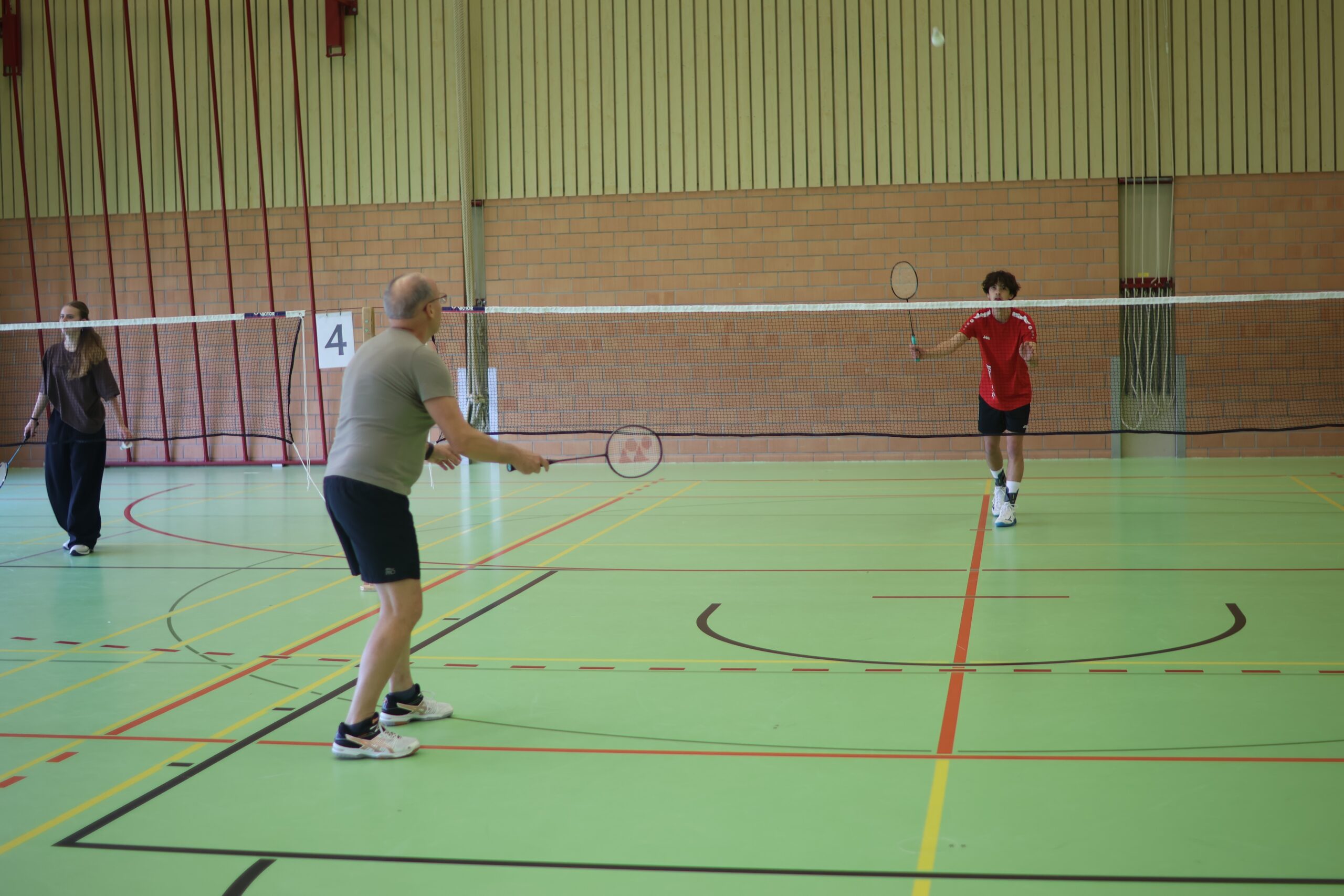 Nach der Begrüssung durch Urs, unseren Turnierleiter, und einer kurzen Einleitung in die Badmintonregeln, ging es für alle zum gemeinsamen Aufwärmen. Diesen wichtigen Part übernahm Etienne und sorgte mit viel Energie und Power gleich für warme Gelenke bei unseren Gästen. Gut vorgewärmt starteten wir dann in die erste Spielrunde. Gespielt wurde Einzel mit zwei Gewinnsätzen.