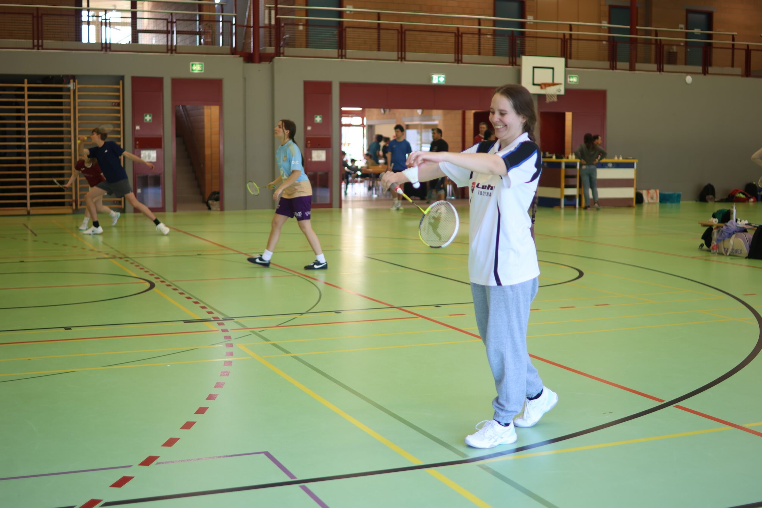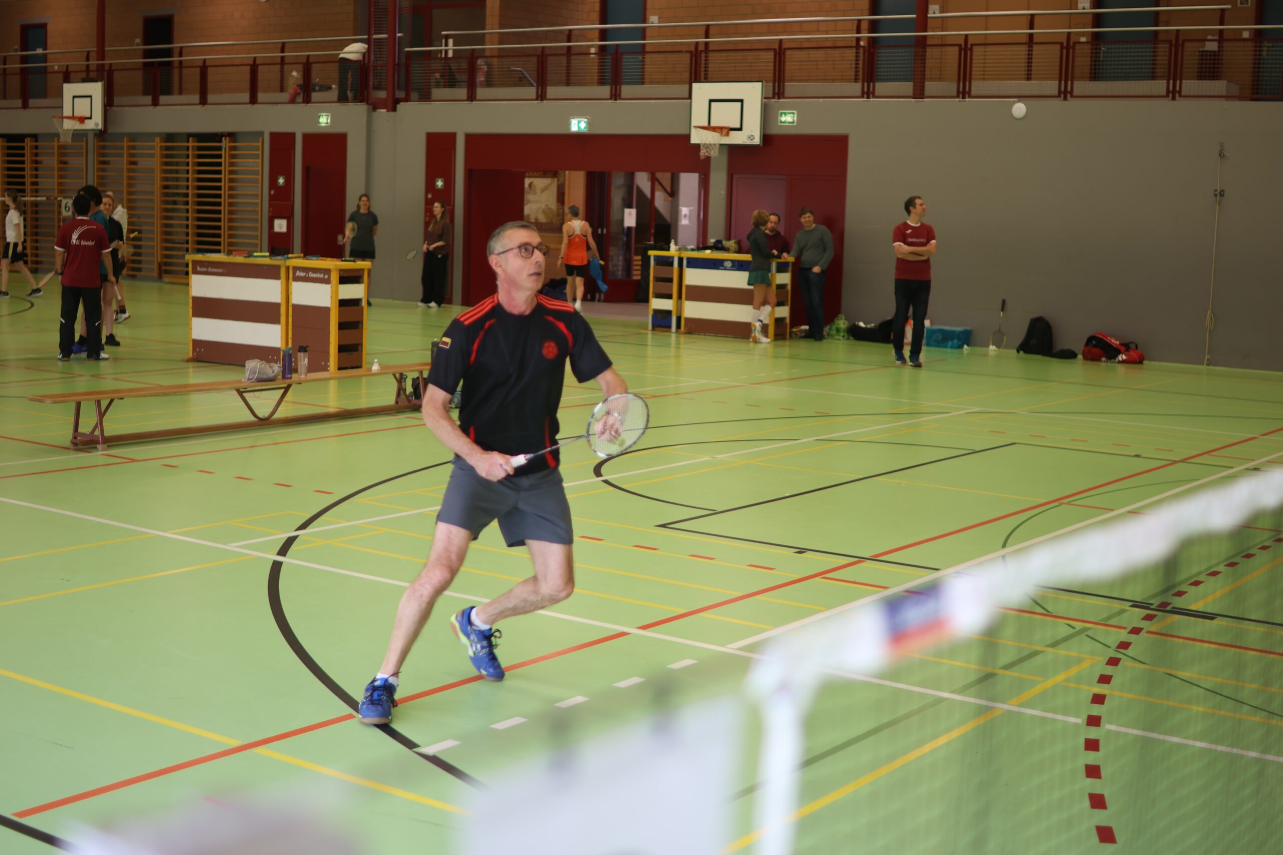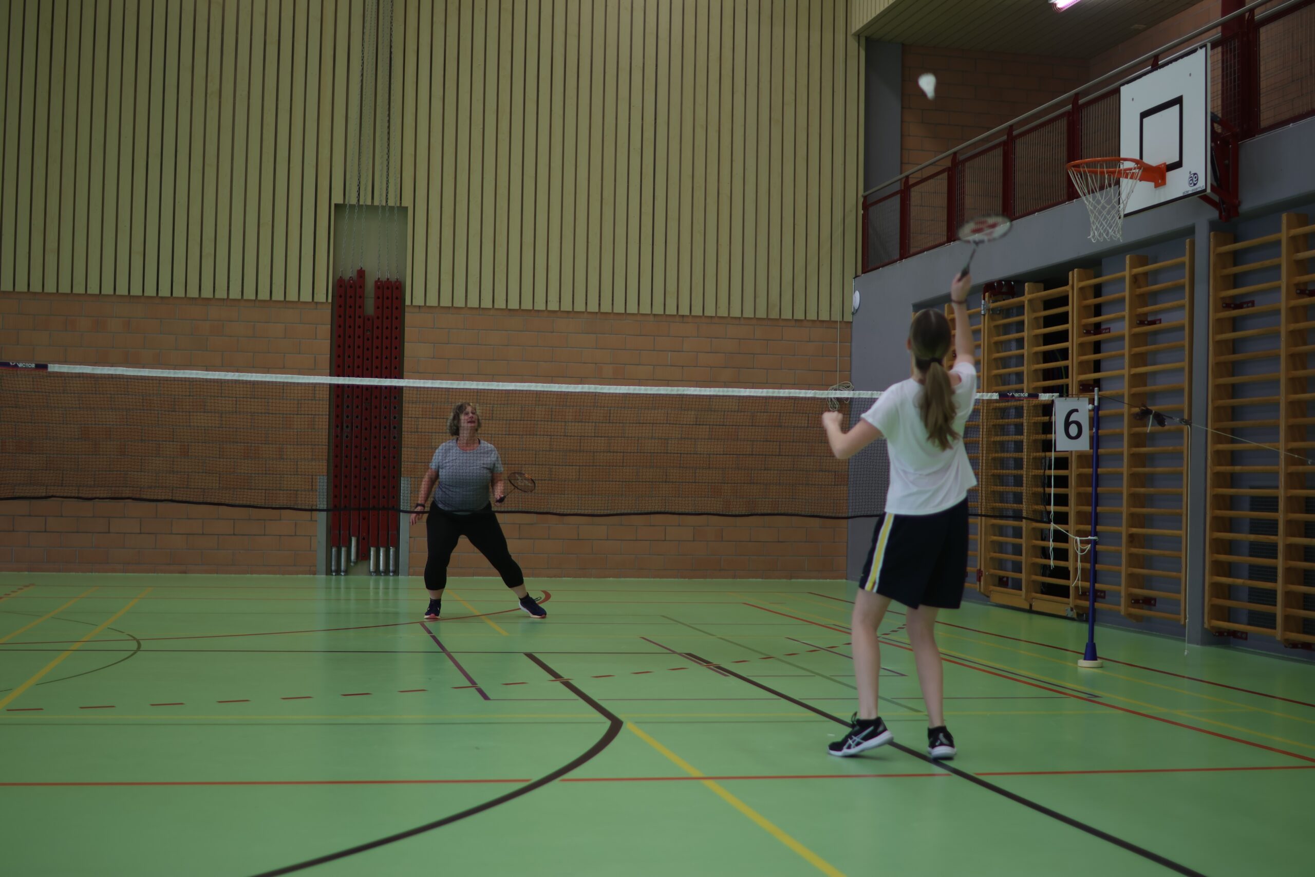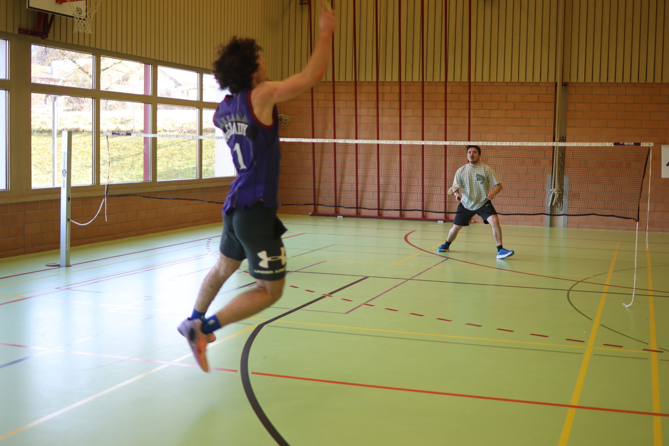 Nach der Begrüssung durch Urs, unseren Turnierleiter, und einer kurzen Einleitung in die Badmintonregeln, ging es für alle zum gemeinsamen Aufwärmen. Diesen wichtigen Part übernahm Etienne und sorgte mit viel Energie und Power gleich für warme Gelenke bei unseren Gästen. Gut vorgewärmt starteten wir dann in die erste Spielrunde. Gespielt wurde Einzel mit zwei Gewinnsätzen.