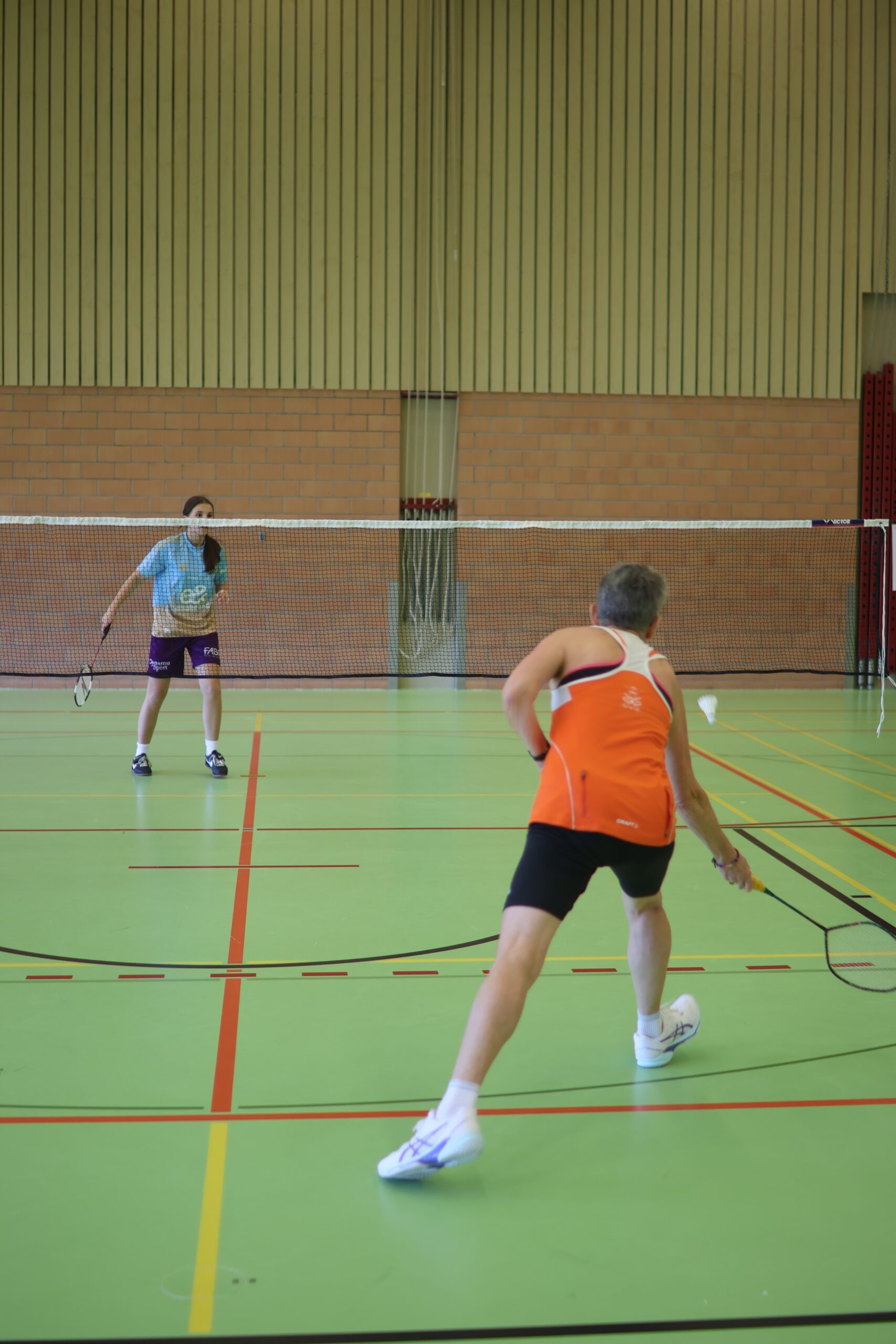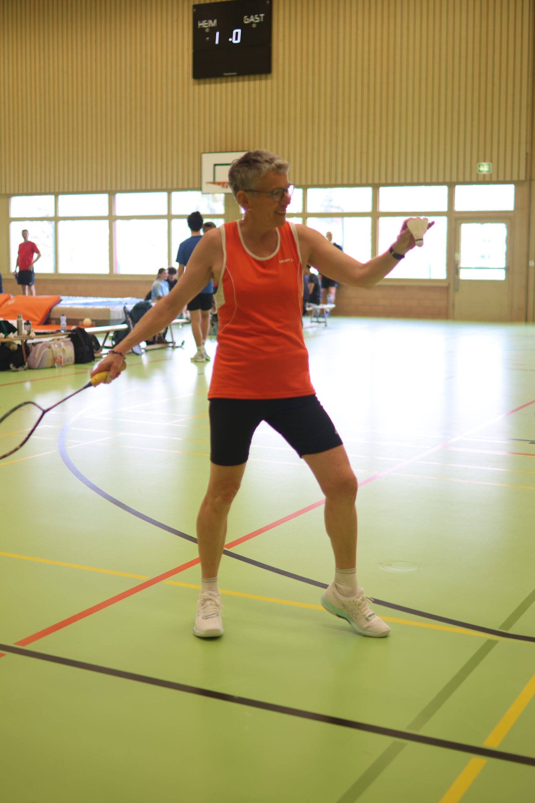 Heinz und Manuel kämpften in einem 3-Satz-Match mit tollen Ballwechseln um jeden Punkt. Hier trafen die Badminton-Erfahrungen von Heinz auf sehr viel sportliche Energie und Power von Manuel aufeinander, was unsere Gäste und die übrigen Teilnehmer förmlich anzog. Nach einem langen Match konnte sich Heinz dann durchsetzen und sich den ersten Platz bei den Herren sichern.