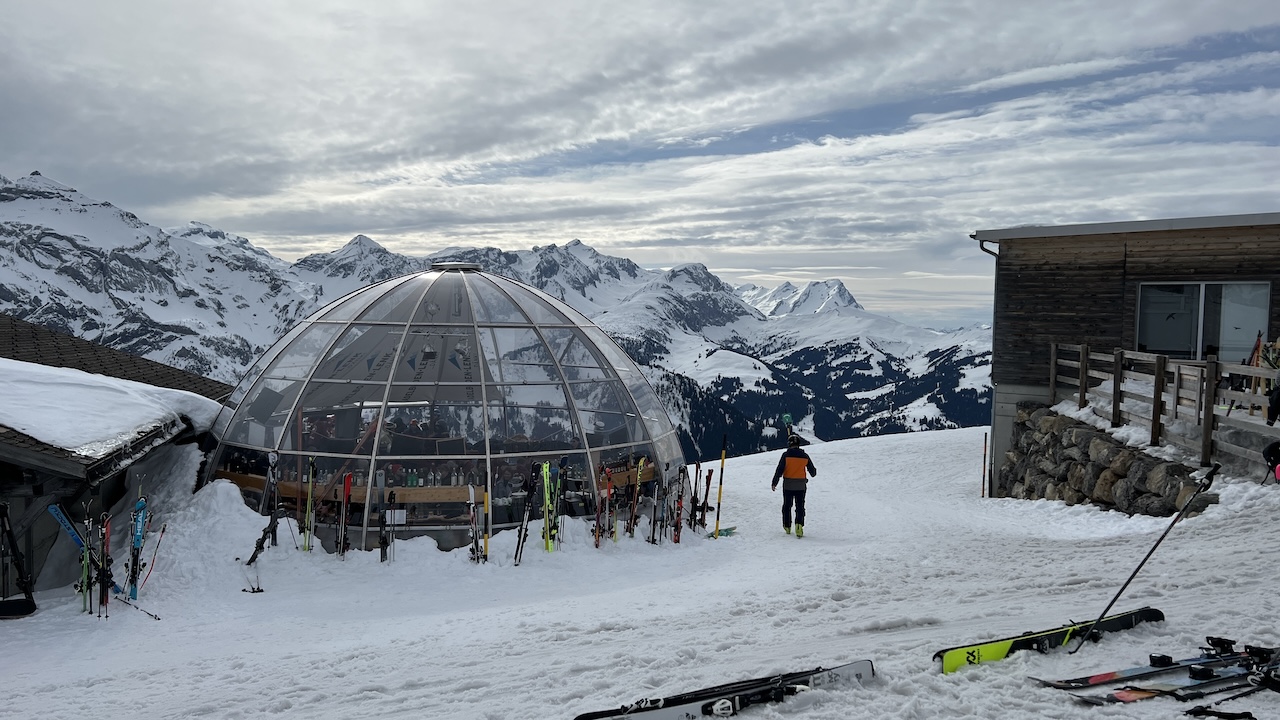 Ein paar Pistenkilometer später, nach dem Mittagessen, teilten wir uns in Sonnengeniesser und pistenhungrige Skifahrer auf. Auch hier kam der Spass oder wilde Geschichten natürlich nicht zu kurz und wir konnten schon wieder herzhaft über ein kleines Missgeschick lachen. Beim Sessellift fahren wurde ein Skistock aus den Händen verloren, der anschliessend unter grossen Kraftanstrengungen, viel Abenteuerlust und unter den Blicken einiger Zuschauer von Etienne geborgen werden musste.