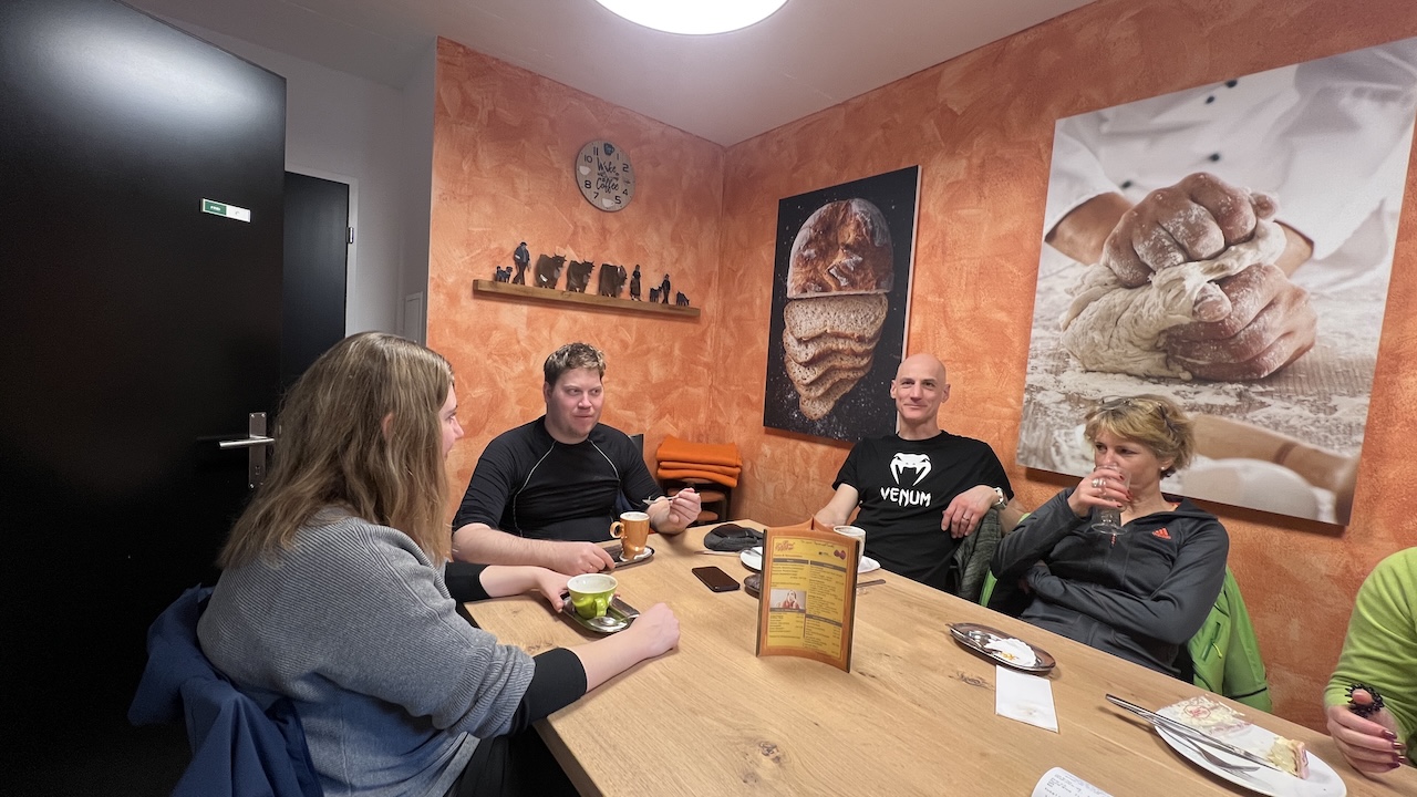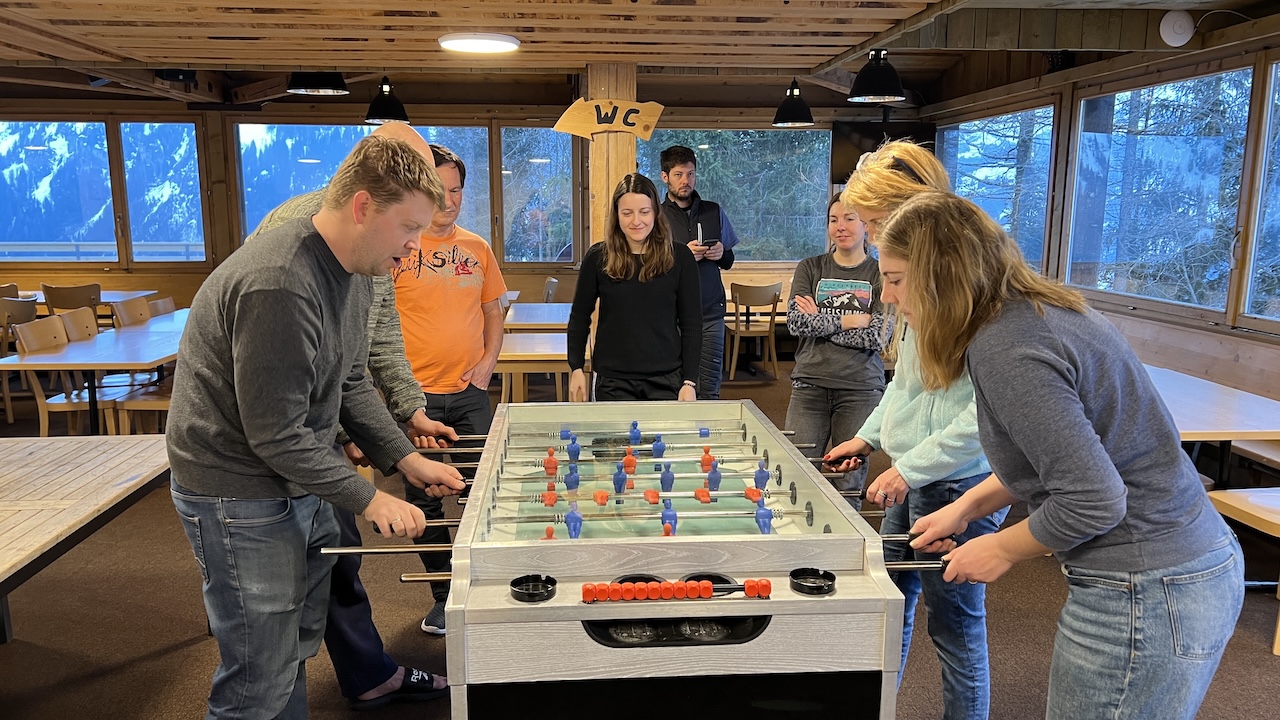 Am nächsten Morgen waren wir wieder pünktlich am Start und wollten nach unserem Frühstück gleich wieder auf die Skipiste. Nach kleineren Verzögerungen beim Küchenteam, die mit dem Tischkicker überbrückt wurde, gab es dann auch unsere morgendliche Stärkung.