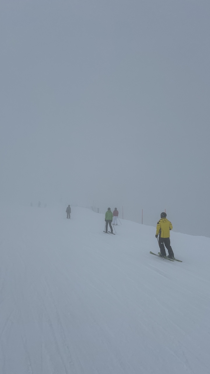 Das Wetter zeigte sich dabei, wie von vergangenen Skiweekends gewohnt, von seiner eher rauen Seite. Tiefhängende Wolken, Nebelfelder, einsetzender Schneeregen und wenige sehr kurze und leichte Sonnenmomente führten zu einem früheren Ende des Skiweekends, als ursprünglich geplant.