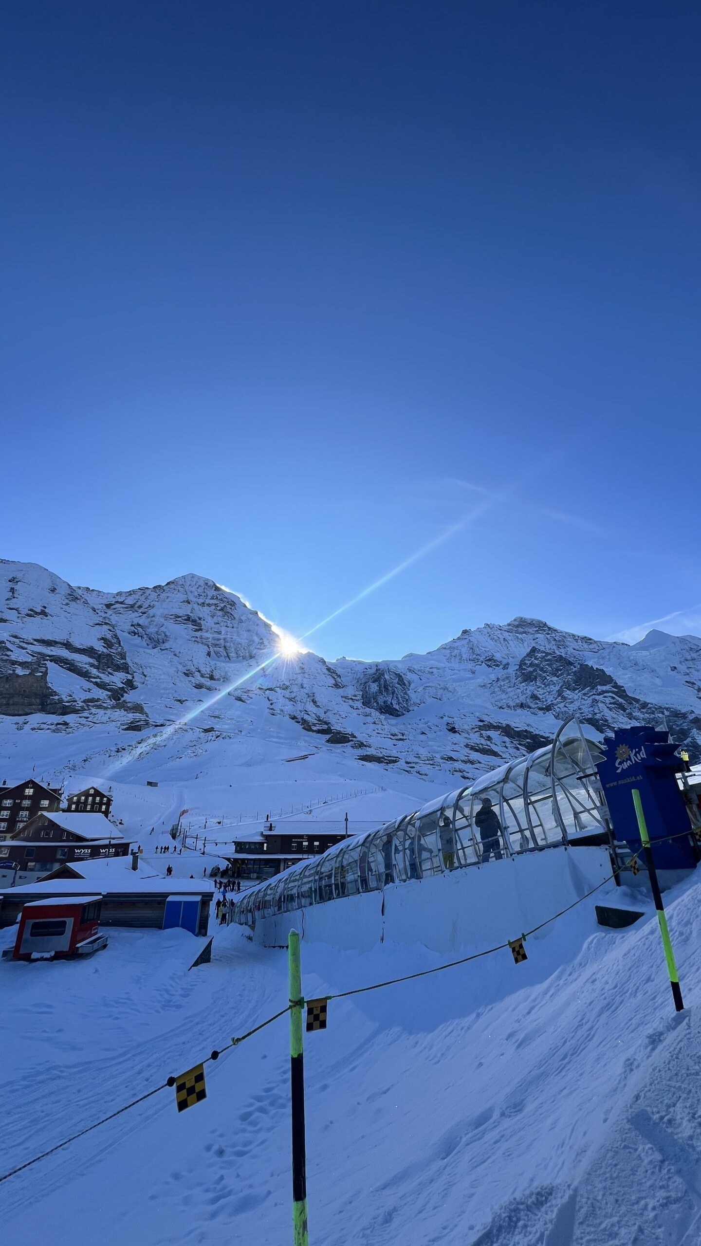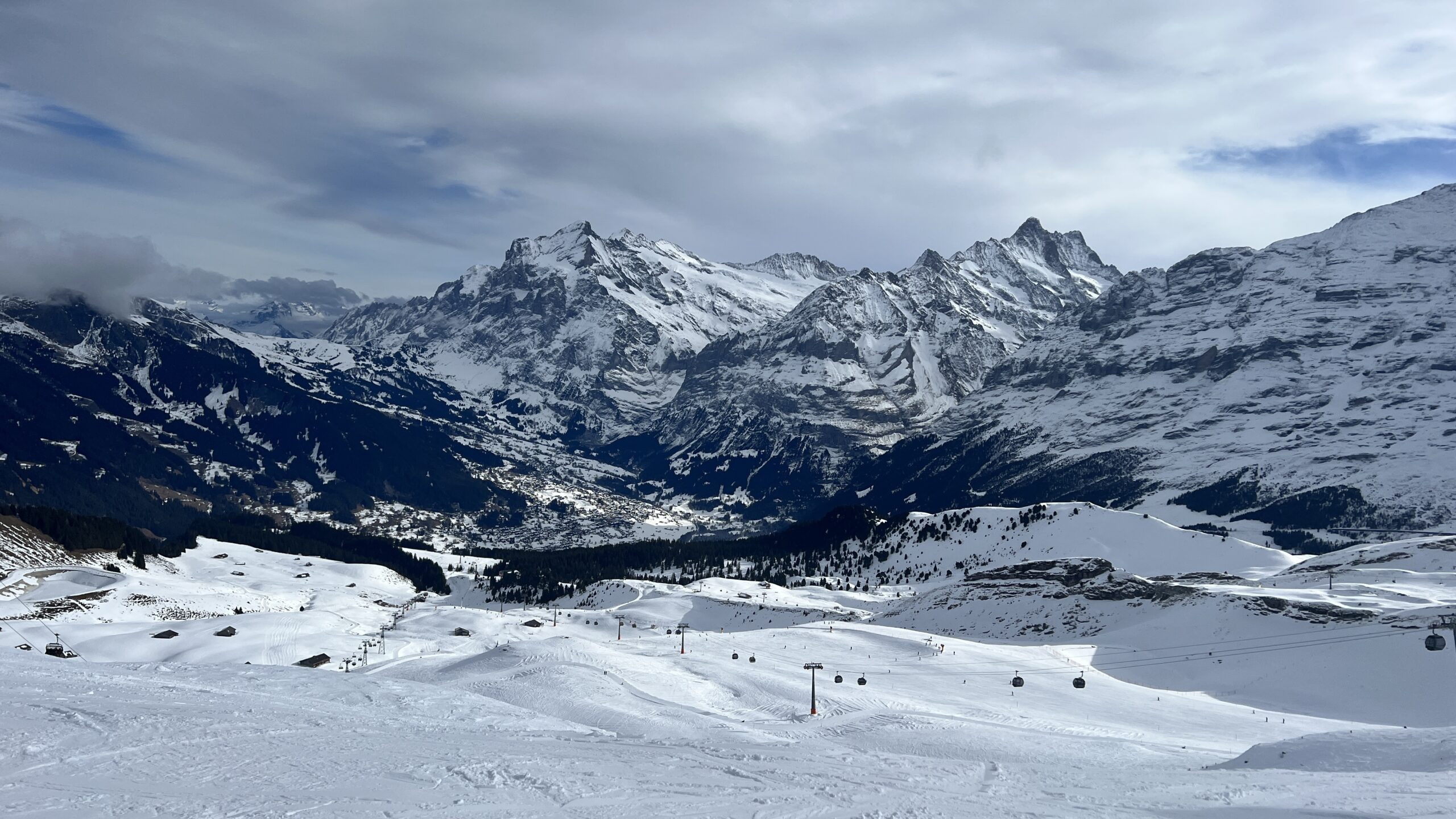 An der Talstation in Grindelwald, dem Terminal, ging es schon zu wie am Flughafen Zürich … Boarding-Aufrufe, lange Warteschlangen und viele Touristen aus allerlei Ländern. Ein kleiner Vorgeschmack auf eine volle Piste.